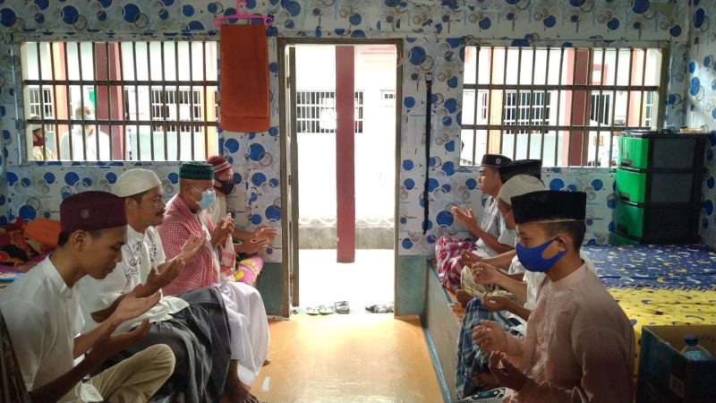 WAYKANAN (RNSI/SMSI) – Pandemi Covid-19 tidak hanya dirasakan oleh Masyarakat umum namun berdampak pula bagi narapidana yang sedang menjalani pidana di dalam lapas bahkan ada banyak warga binaan sudah tertular dibeberapa lapas/rutan di seluruh Indonesia. Menyikapi hal tersebut Lapas Way Kanan turut mendoakan dengan mengadakan kegiatan Do’a Bersama dari Dari Masjid, Pura dan Gereja Lapas Way Kanan, 504 Napi dan Pegawai doakan Indonesia Bebas Corona. Demikian disampikan Kepala Lapas Kelas IIB Way Kanan, Syarpani saat memimpin Istighosah bersama Ust. Imam Maksum di Masjid AT-Taubah Lapas Way Kanan. Selasa, 13 Juli 2021.