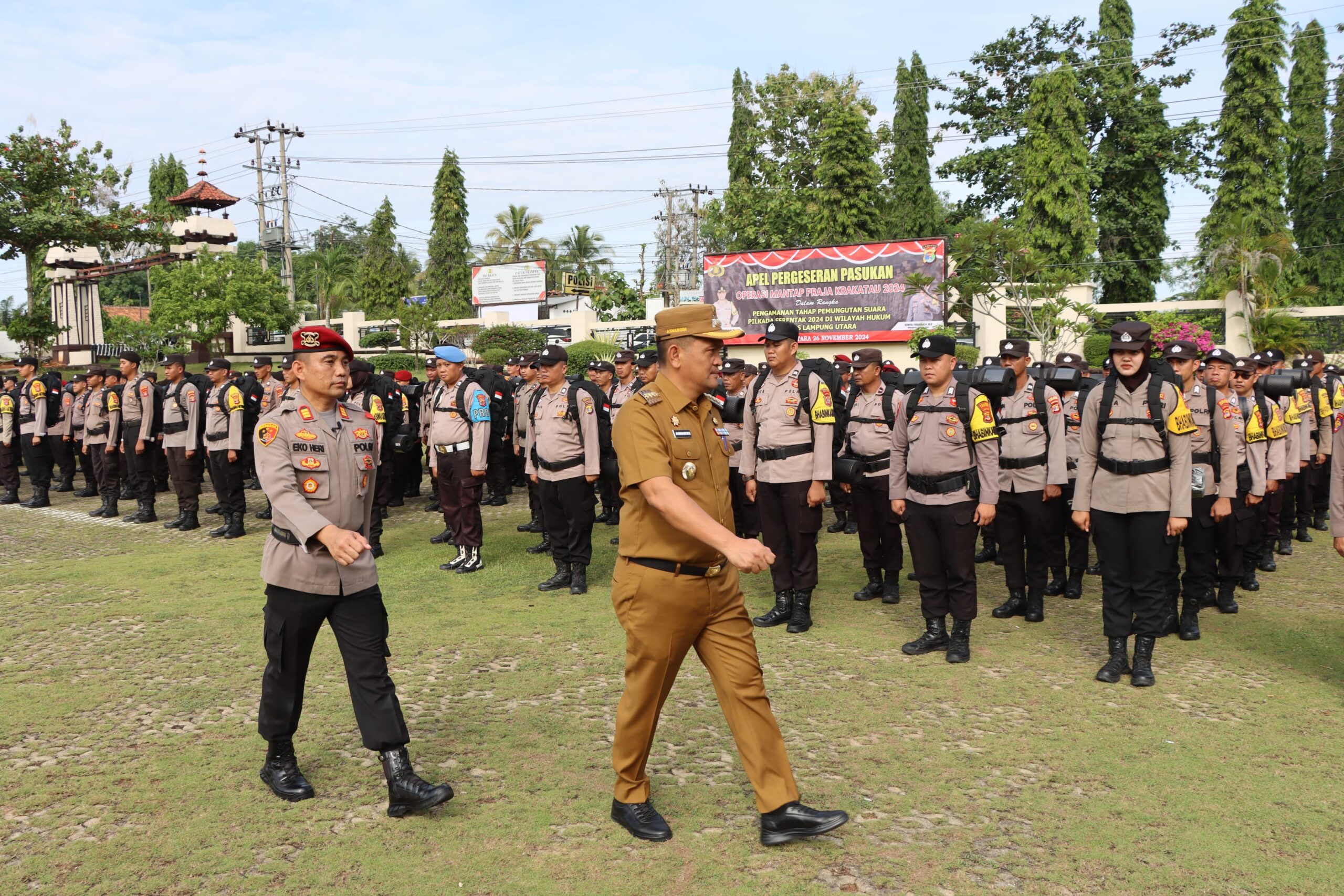 LAMPUNG UTARA (RNSI) – Polres Lampung Utara menggelar apel pergeseran pasukan (serpas) dalam rangka pengamanan pemungutan suara pada Pemilihan Kepala Daerah (Pilkada) serentak 2024, Selasa (26/11/24).
