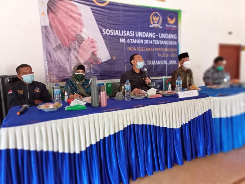 “Dalam hal penyelenggaraan urusan pemerintahan dan kepentingan masyarakat setempat dalam sistem pemerintahan NKRI dilaksanakan oleh kepala desa dibantu perangkat desa sebagai unsur penyelenggara Pemerintahan Desa,” tambah Drs. H. Tamanuri, MM, yang didampingi anggota Komisi II DPRD Provinsi Lampung, Mardiana, ST, MT., dari Fraksi Partai NasDem.