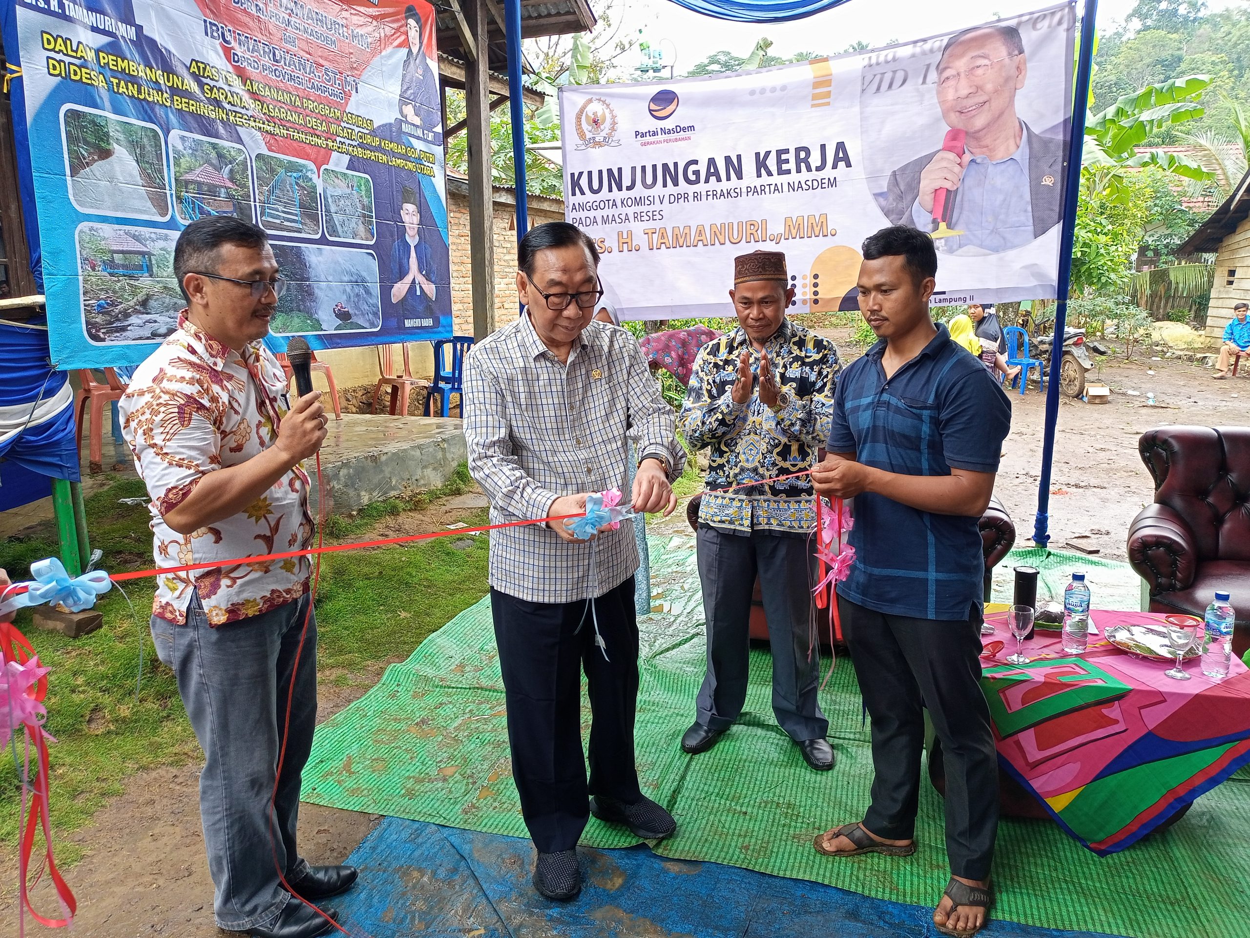 LAMPUNG UTARA (RNSI) – Sarana Prasarana Bangunan Wisata Curup Kembar yang terletak di Desa Tanjungberingin, Kecamatan Tanjungraja, Kabupaten Lampung Utara, diresmikan secara simbolis pemanfaatannya oleh anggota Komisi V DPR-RI Fraksi Partai NasDem, Drs. Hi. Tamanuri, M.M., pada Senin, 2 Januari 2023.