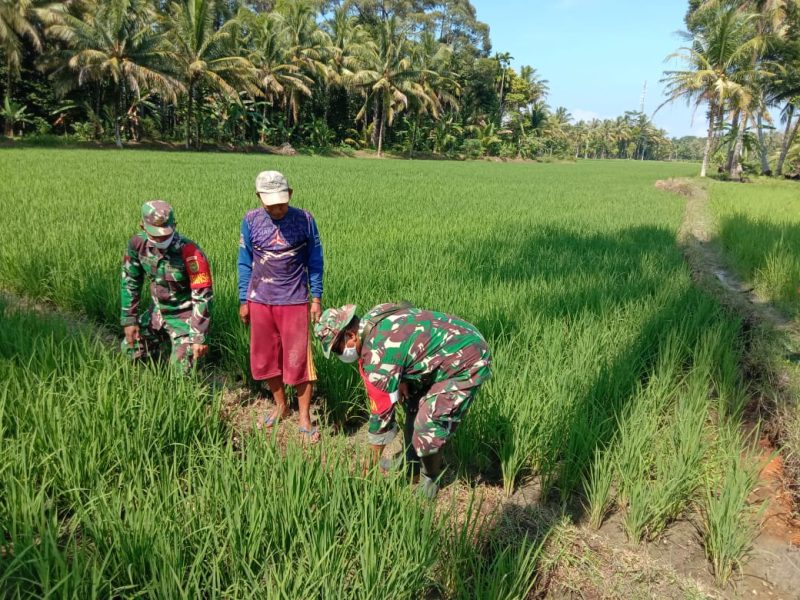 Guna wujudkan harapan petani akan hasil panen yang melimpah, Babinsa Koramil 422-02/Pesisir Selatan Kodim 0422/Lampung Barat, Sertu Maryono, terjun langsung dalam perawatan tanaman padi milik warga di Pekon Biha, Kabupaten Pesisir Barat, Kamis, 27 Januari 2022.
