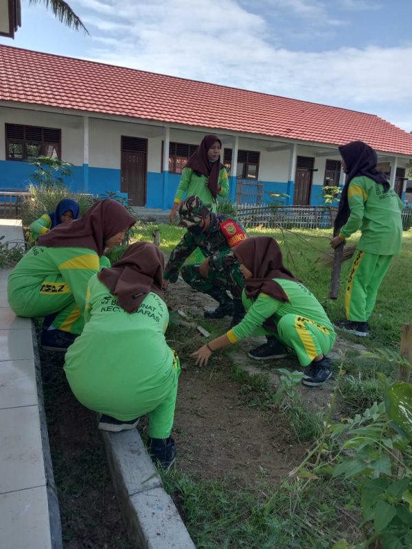 Salah satu wujud kebersamaan dan cinta akan kebersihan lingkungan, anggota Babinsa Koramil 422-02/Pesisir Selatan bersama murid SMP Negeri 1 Atap menjalin komunikasi sosial dan keakraban.