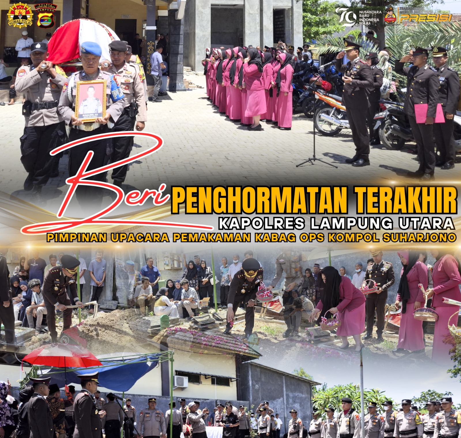 Upacara pemakaman tersebut dipimpin langsung oleh Kapolres Lampung Utara AKBP Teddy Rachesna, S.H., S.I.K., M.Si. yang dilaksanakan di pemakaman umum yang ada di Kelurahan Sukamenanti Kecamatan Kedaton Bandar Lampung.
