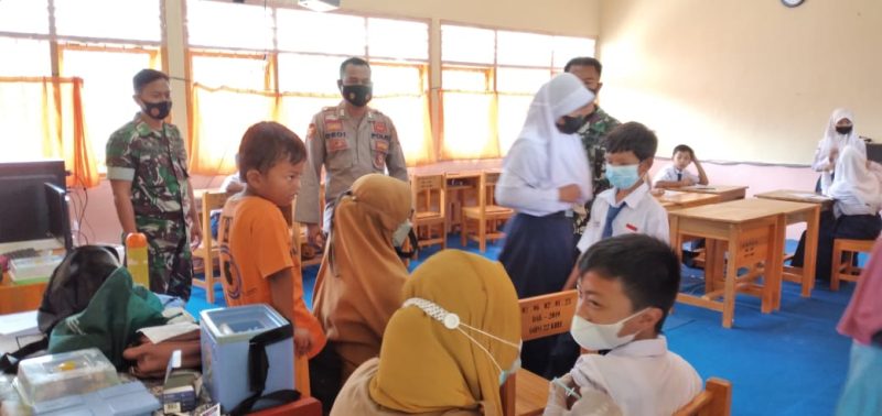 Dalam mendampingi pelaksanaan vaksinasi anak, Babinsa berpesan kepada siswa penerima vaksin, bahwa vaksin ini aman dan halal, jadi tidak perlu takut.