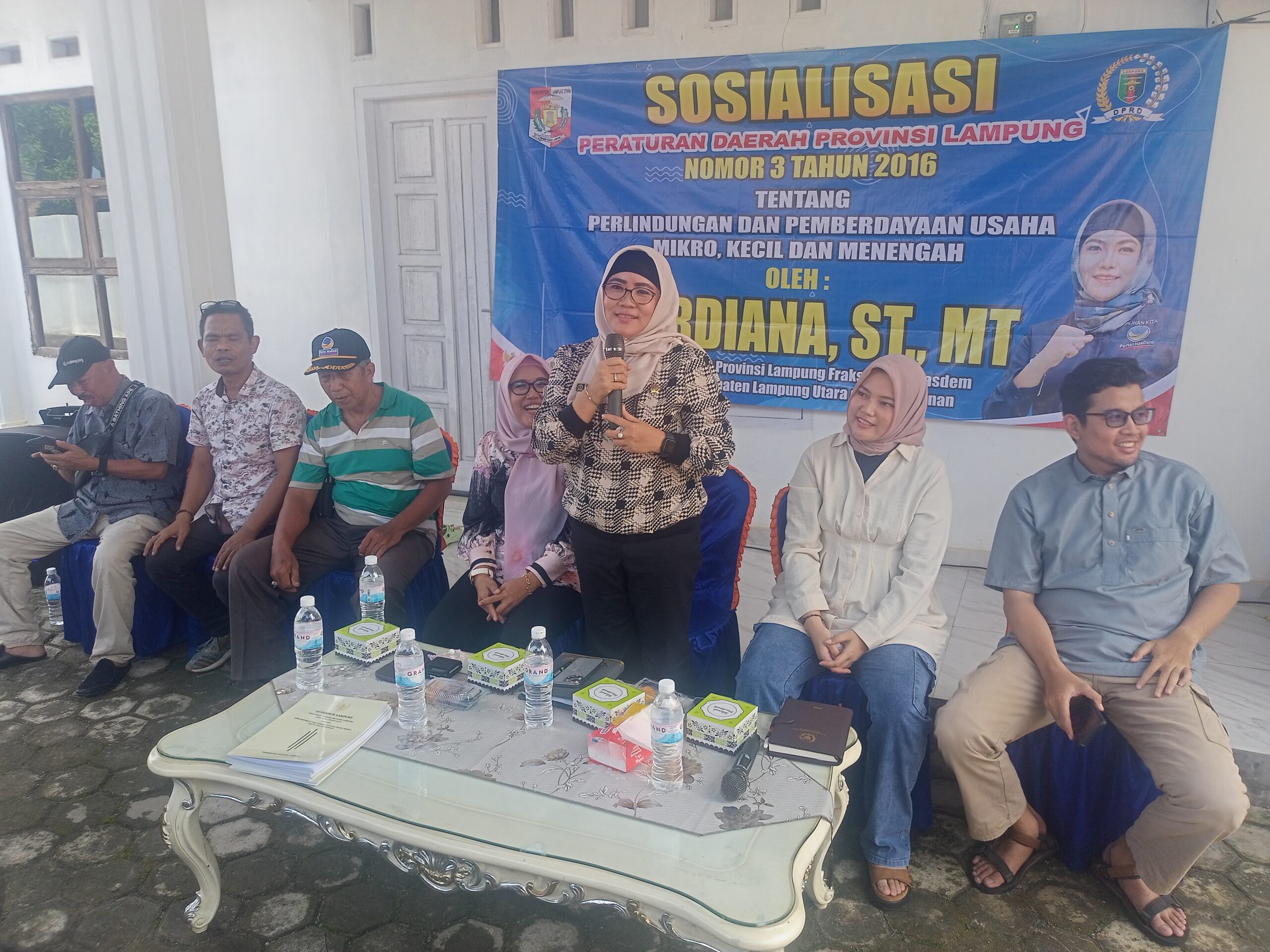 LAMPUNG UTARA (RNSI) – Bertepatan dengan perayaan Idul Adha 1445 H di hari kedua, anggota Komisi IV DPRD Provinsi Lampung, Ir. Mardiana, S.T., M.T., melangsungkan Sosialisasi Peraturan Daerah nomor 3 tahun 2016, tentang Perlindungan dan Pemberdayaan Usaha Mikro Kecil dan Menengah, Selasa, 18 Juni 2024, bertempat di Rumah Aspirasi Kotabumi, Kelurahan Tanjungsenang, Kotabumi Selatan, Lampung Utara.