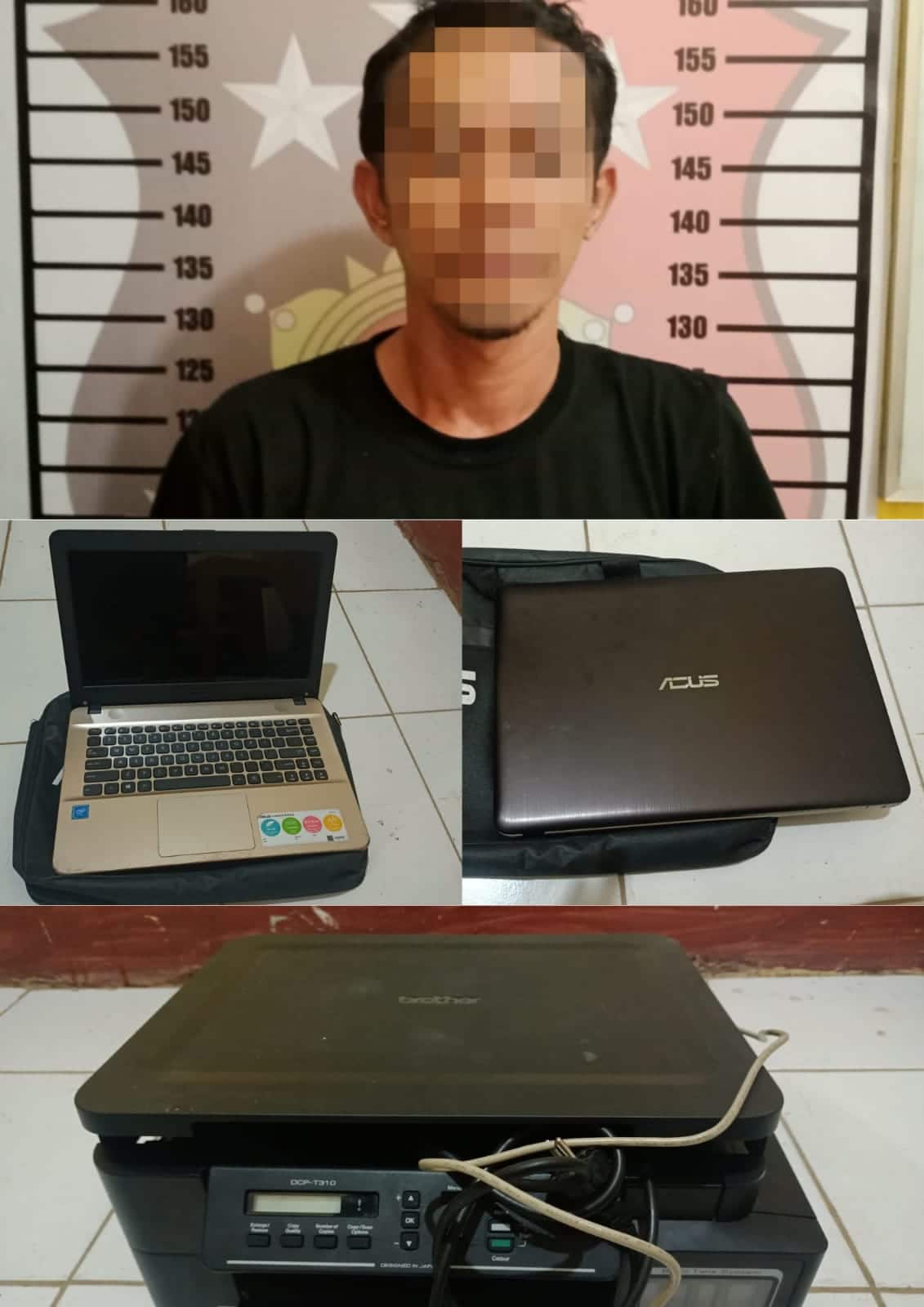 “Setelah kita menerima laporan korban, jajaran melakukan penyelidikan dan pada hari Kamis 26 Mei 2022, sekitar pukul 18.00 WIB, tersangka yang telah teridentifikasi kita ringkus di kediamannya berikut mengamankan barang bukti laptop dan printer milik korban,” lanjut Kapolsek.