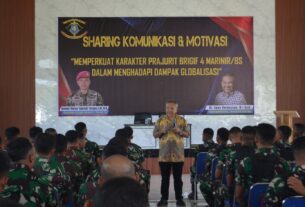 PESAWARAN (RNSI/SMSI) – Prajurit Brigif 4 Marinir/BS mengikuti Upacara Peringatan hari kelahiran Pancasila tahun 2022 secara virtual bertempat di lobi mako Brigif 4 Marinir/BS Piabung, Padang Cermin, Pesawaran Lampung, Rabu, 1 Juni 2022.