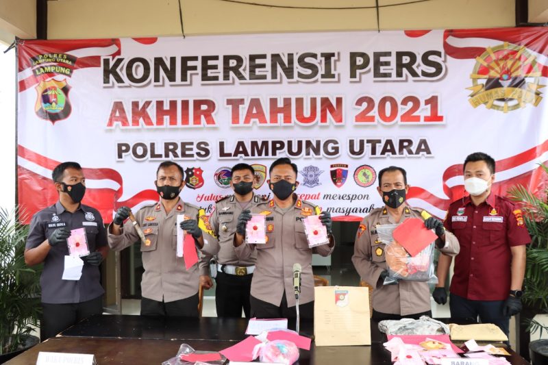 Hal ini disampaikan Kapolres Lampung Utara, AKBP Kurniawan Ismail, dalam konferensi persnya, yang didampingi pejabat utama, di Mako Polres setempat, pada Jumat, 31 Desember 2021.