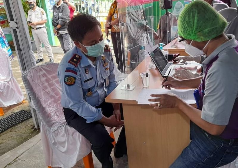 Lampung Tengah (Restorasi News Siber Indonesia/SMSI) – Penyuntikan vaksinasi Covid-19 di Kabupaten Lampung Tengah, diawali Kepala Lembaga Pemasyarakatan (Kalapas) kelas.ll.B Gunung Sugih, Denial Arif bersama Forkopimda setempat, di Puskesmas Gunung Sugih, Jum’at, 29 Januari 2021.