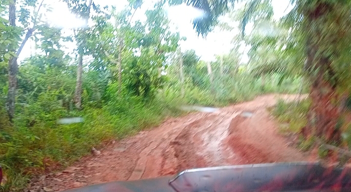 Jalan poros tak kurang sepanjang 4 kilometer dengan badan jalan yang masih berupa jalan tanah merah dan berpasir itu dipenuhi lubang menganga dengan kubangan lumpur di sana-sini sangat menghambat akses dan aktifitas penunjang kehidupan warga setempat.
