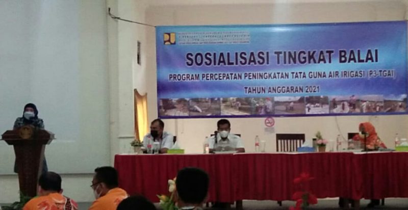 LAMPUNG UTARA (RNSI/SMSI) – Direktorat Jenderal Sumber Daya Air (Dirjen SDA) Balai Besar Wilayah Sungai (BBWS) Mesuji-Sekampung (MS) melangsungkan sosialisasi tingkat balai Program Percepatan Peningkatan Tataguna Air Irigasi (P3TGAI) tahun anggaran 2021, yang berlangsung Kamis, 1 April 2021, di auditorium Hotel Graha Wisata Kalibening, Lampung Utara.