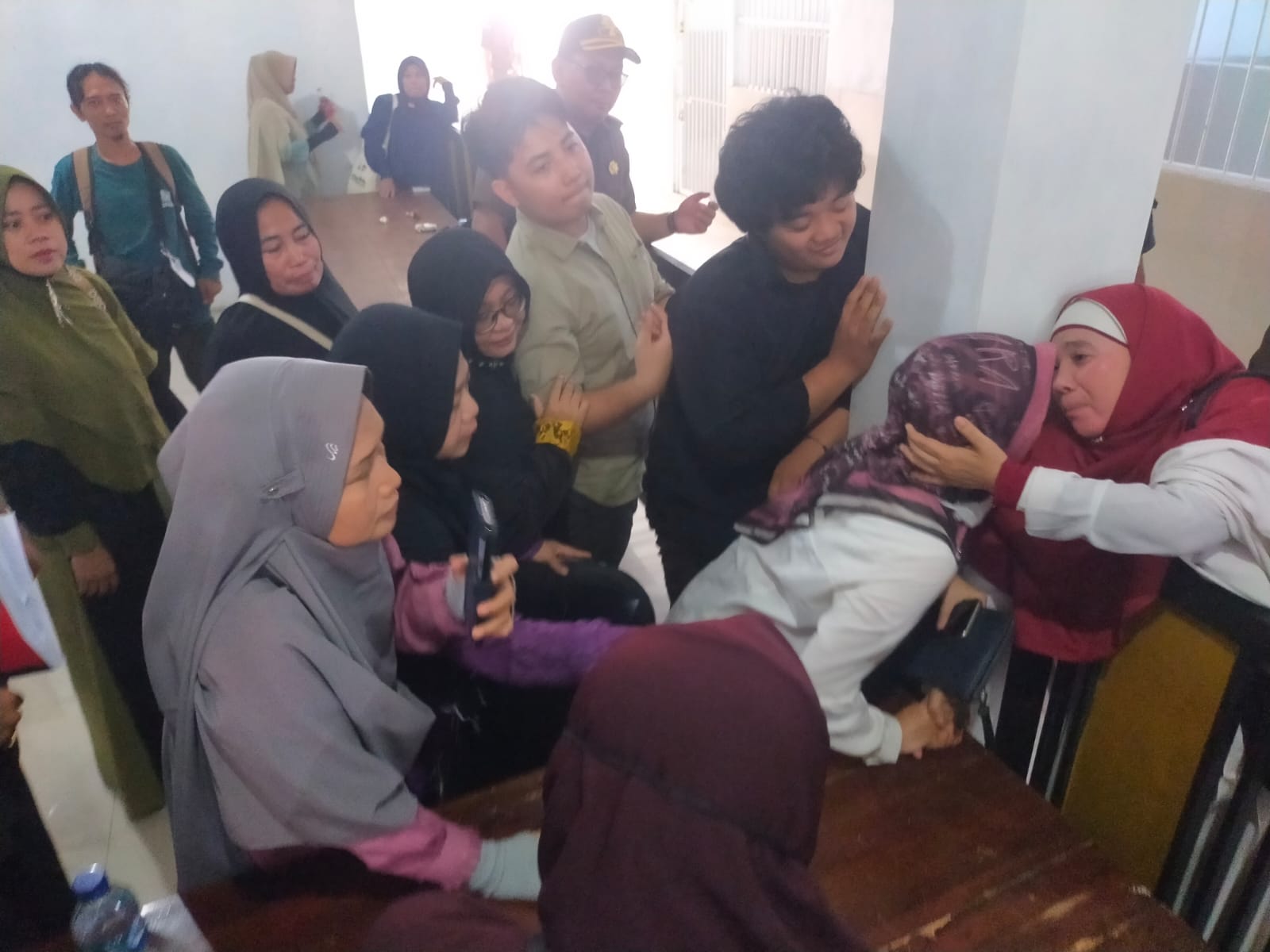 Massa pendukung diminta keluar oleh petugas PN Kotabumi lantaran majelis hakim meminta keterangan tiga orang saksi santri berlatar belakang anak di bawah umur.