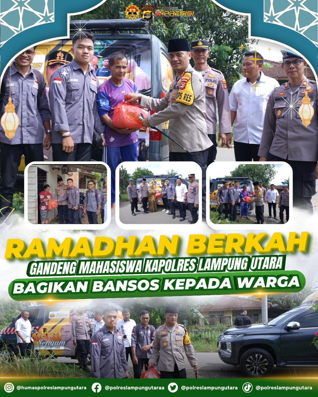 LAMPUNG UTARA (RNSI) – Polres Lampung Utara terus berbagi kebaikan dibulan suci Ramadhan 1446 H dengan membagi bantuan sosial (bansos) kepda warga, Senin (10/3/25).