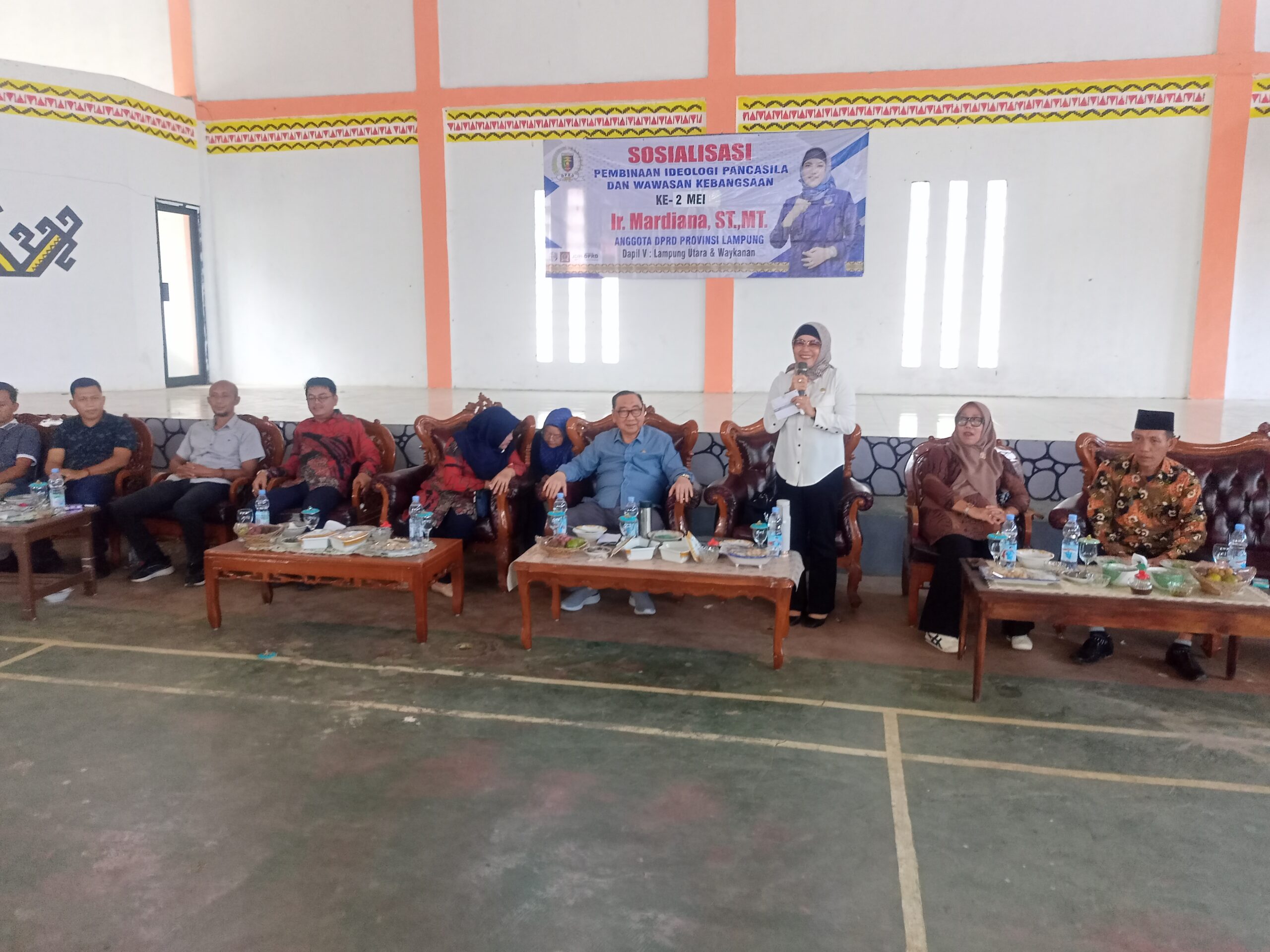 LAMPUNG UTARA (RNSI) – Guna terus menggalakkan nilai hidup yang rukun, damai, dan menjunjung tinggi sikap teloransi antarsesama, Wakil Ketua Komisi V DPRD Provinsi Lampung, Ir. Mardiana, S.T., M.T., melangsungkan Sosialisasi Pembinaan Ideologi Pancasila dan Wawasan Kebangsaan.