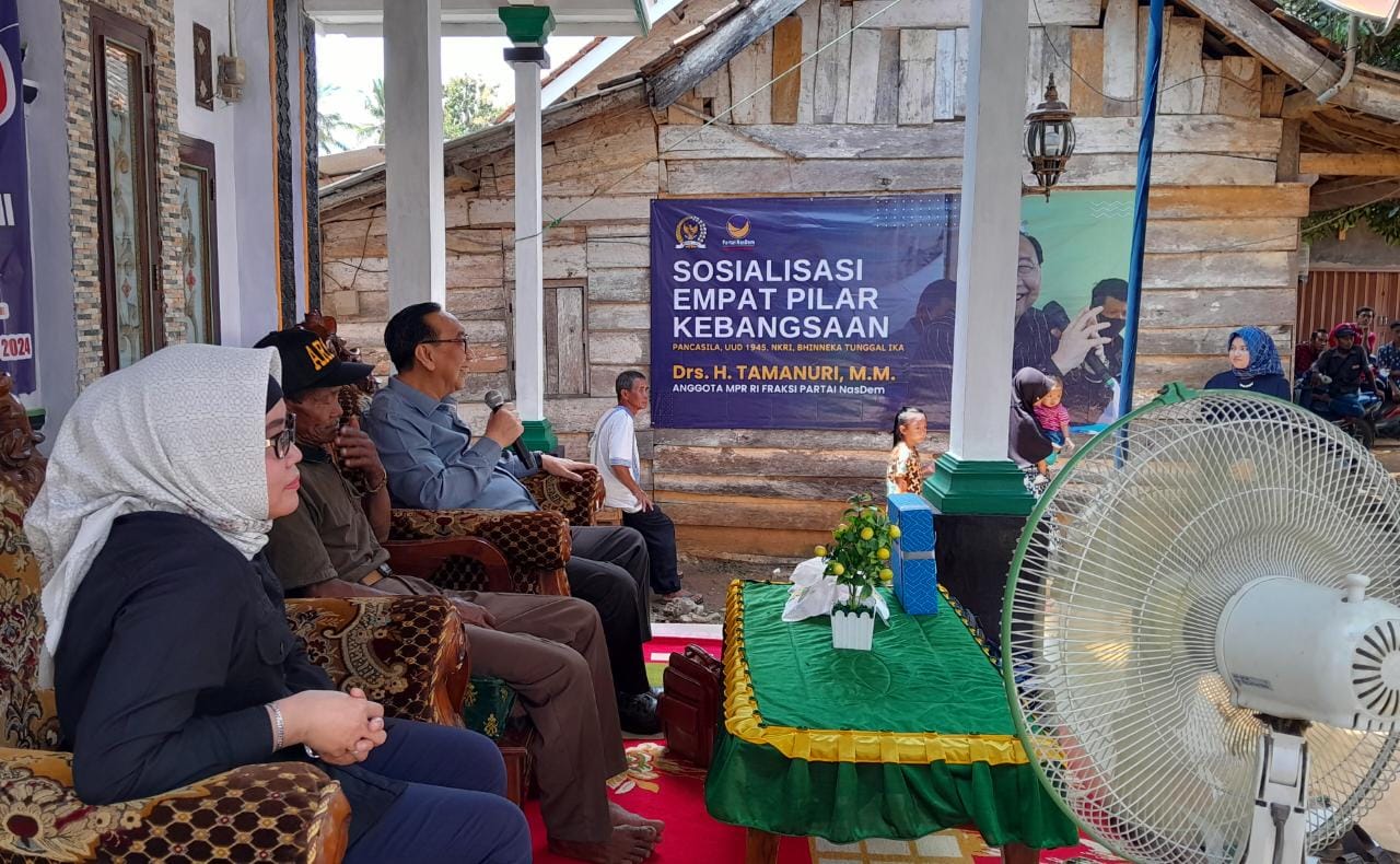 “Adapun empat pilar kebangsaan dimaksud, yakni Pancasila sebagai dasar negara, UUD 1945 sebagai dasar hukum di Indonesia, NKRI sebagai bentuk negara, dan Bhinneka Tunggal Ika merupakan semboyan Bangsa Indonesia,” terang Tamanuri di hadapan konstituennya.