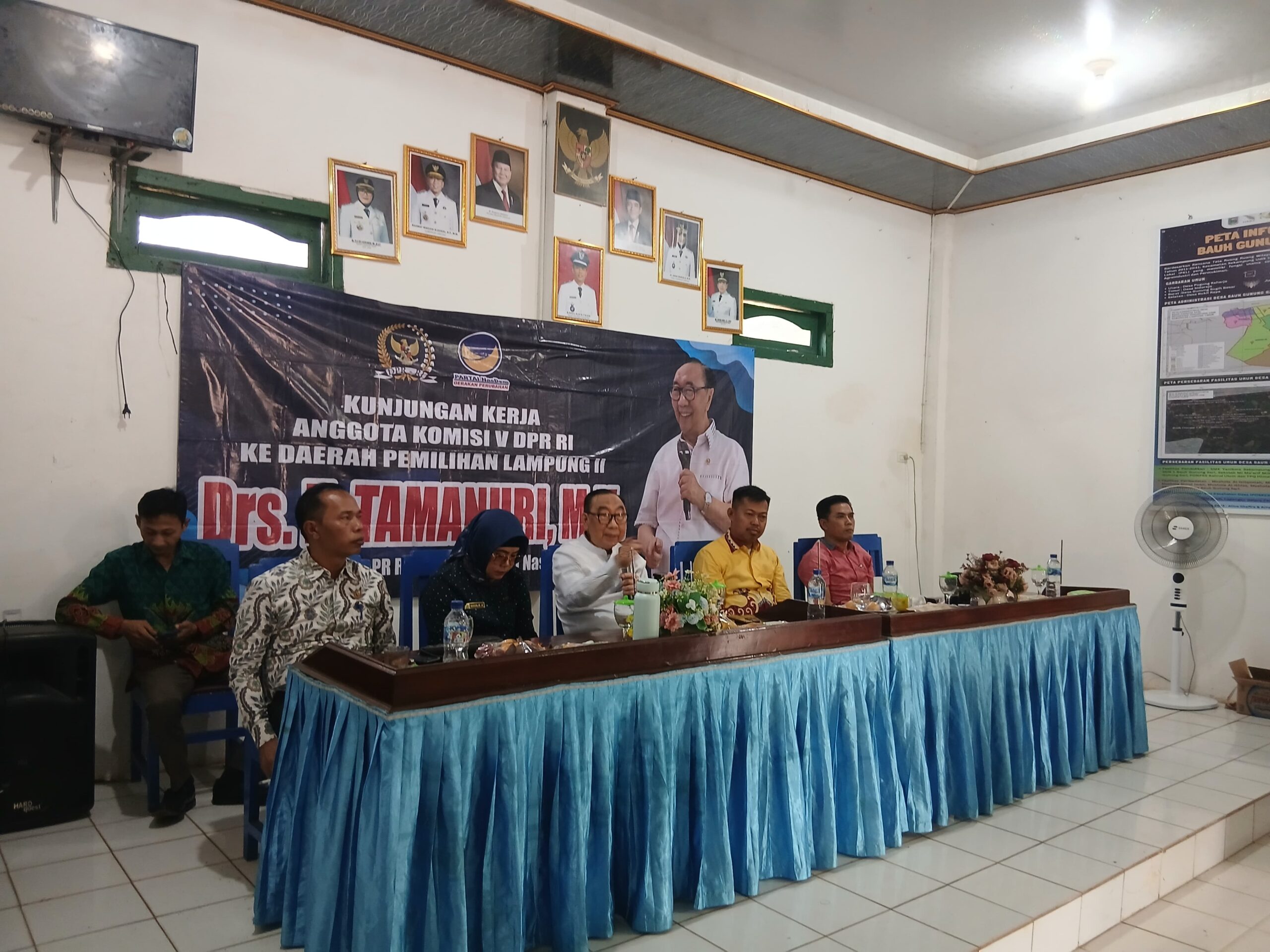 LAMPUNG TIMUR (RNSI) – Guna memberi pelayanan sekaligus melihat kondisi aktual masyarakat di daerah pemilihannya, Anggota Komisi V DPR-RI Fraksi Partai NasDem, Drs. Hi. Tamanuri, M.M., melangsungkan agenda kerja rutin kunjungan kerja di Desa Bauh Gunung Sari, Kecamatan Sekampung Udik, Kabupaten Lampung Timur, Sabtu, 28 Juni 2025.