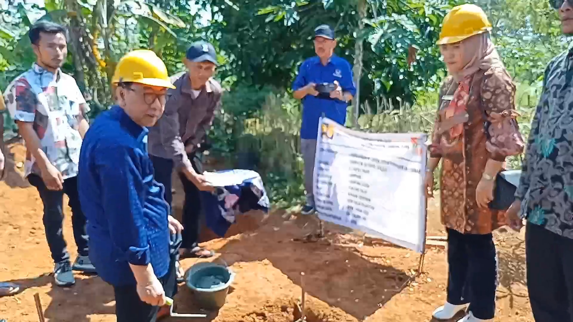 Hi. Tamanuri bersama Mardiana juga meresmikan bangunan BSPS yang telah selesai dibangun serta melangsungkan peletakan batu pertama simbolis kick off sebagai simbol dimulainya pekerjaan sanitasi desa (sandes) di Desa Karangwaringin. (Ardi)