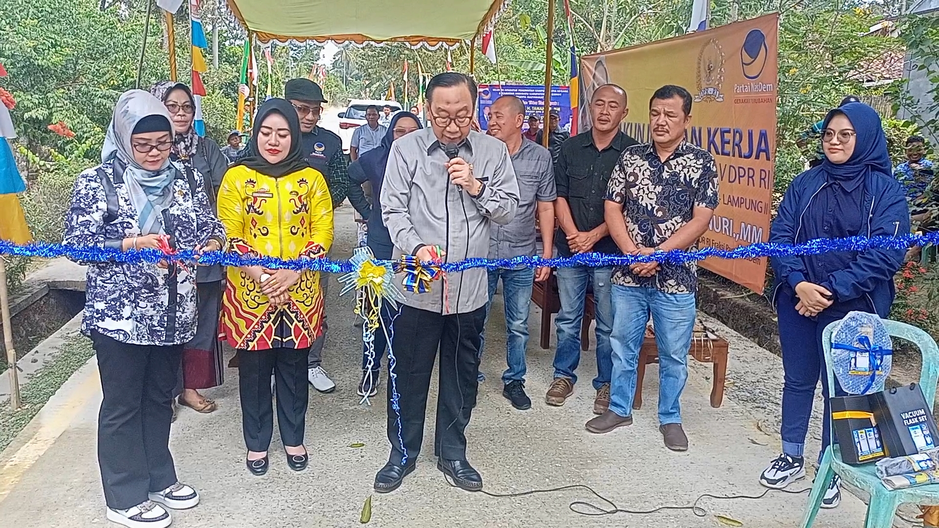WAYKANAN (RNSI) – Pembangunan infrastruktur jalan rabat beton yang menghubungkan Kampung Setianegara – Kampung Baktinegara, Kecamatan Baradatu, Kabupaten Waykanan, diresmikan anggota Komisi V DPR-RI Drs. Hi. Tamanuri, M.M., didampingi anggota Komisi IV DPRD Provinsi Lampung Ir. Mardiana, S.T., M.T.