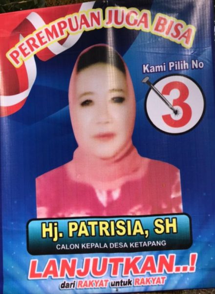 Hj. PATRISIA, SH, CALON KEPALA DESA KETAPANG PARIWARA 26/11/2021Ardian syah NOMOR TIGA (3) BERBAKTI UNTUK KETAPANG YANG TENTERAM, RUKUN, DAN MANDIRI DARI RAKYAT UNTUK RAKYAT Bagikan ini: Bagikan ke Telegram(Membuka di jendela yang baru) Telegram Bagikan pada Facebook(Membuka di jendela yang baru) Facebook Lagi Bagikan ke WhatsApp(Membuka di jendela yang baru) WhatsApp Baca Juga : Selamat Hari Guru Nasional 2021