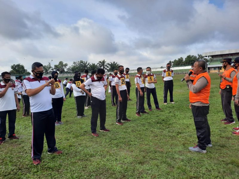 “Dalam melaksanakan ujian kesamaptaan anggota terlebih dahulu diperiksa kesehatan seperti, cek suhu tubuh, pemeriksaan tekanan darah. Setelah dinyatakan sehat, anggota diperbolehkan melaksanakan tes meliputi lari selama 12 menit, full up, push-up, sit up dan lari angka delapan serta beladiri Polri,” Kata Kompol Suharto.