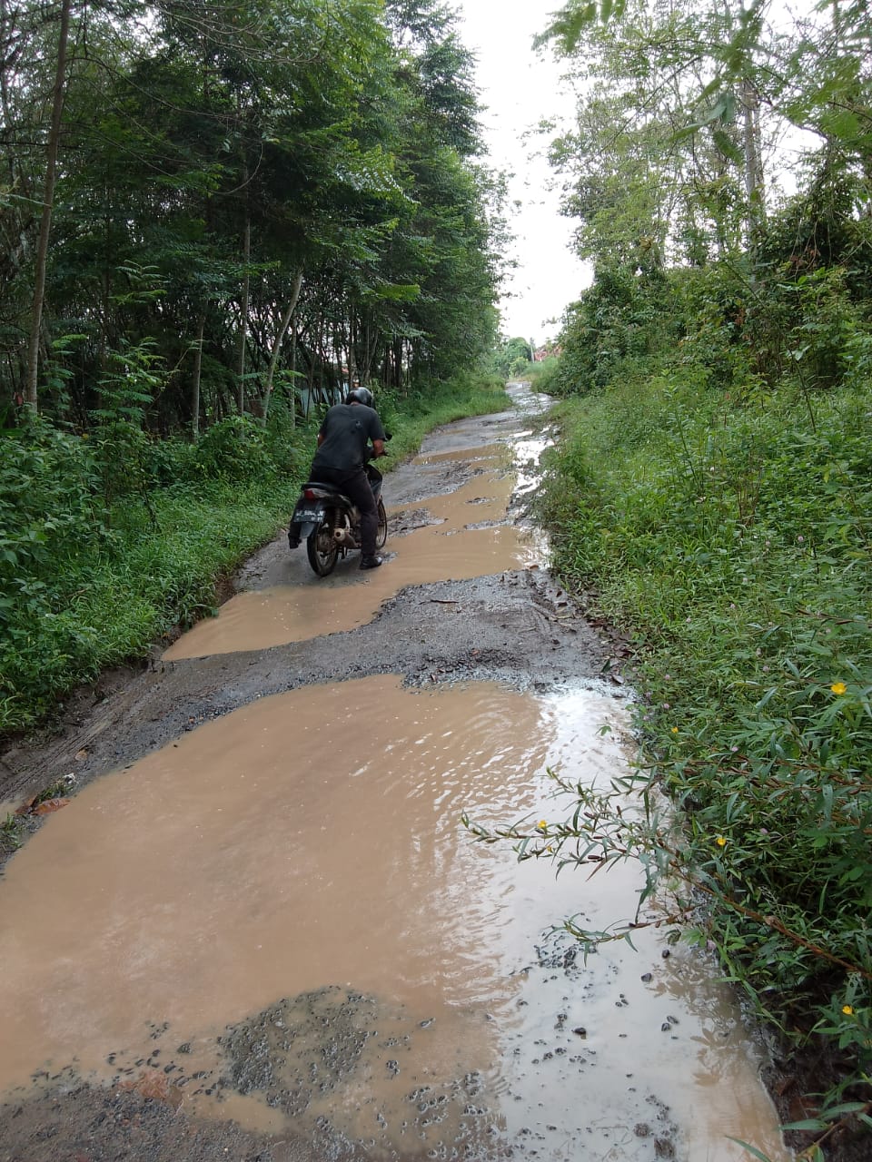 “Ini jalan utama kami, Pak. Kondisi seperti ini sudah bertahun-tahun tidak ada perbaikan. Ya, akhirnya sekarang jalan ini sudah rusak parah dan sangat menghambat perjalanan kami,” keluh Sarwan.