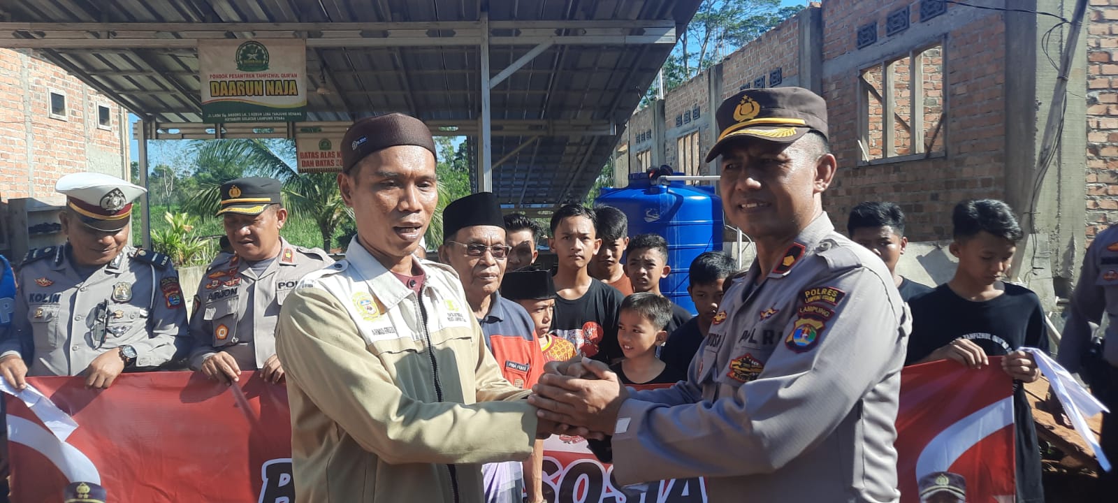 Di sela-sela kegiatan Wakapolres Kompol Dwi mewakili Kapolres Lampung Utara AKBP Kurniawan Ismail, S.H., S.I.K., M.I.K. mengatakan, Pada hari ini kami dari mewakili seluruh personel Polres Lampung Utara menggelar bhakti sosial dengan memberikan bantuan berupa puluhan sak semen di pondok pesantren Tahfizhul Quran Daarun Naja.