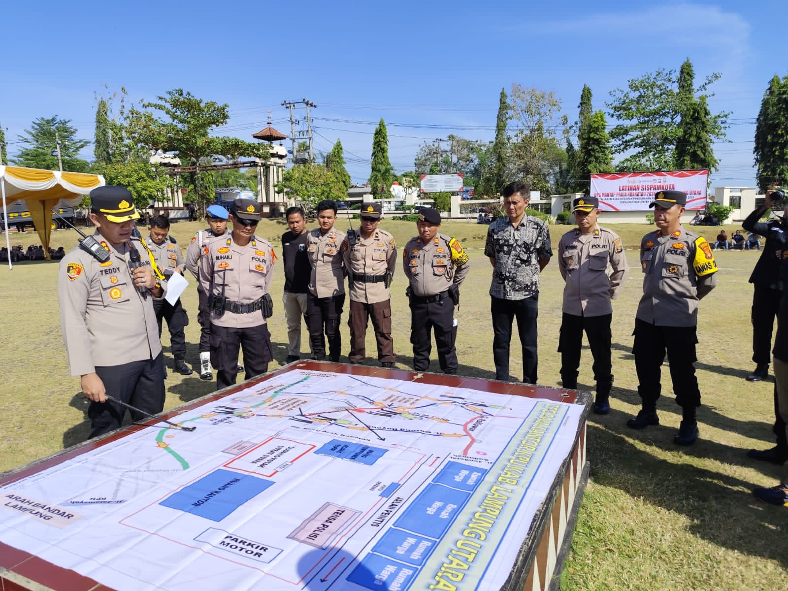 Lanjut orang nomor satu di jajaran Polres Lampung Utara, kegiatan Sispamkota merupakan rangkaian simulasi Tactical Floor Game (TFG) sesuai situasi kerawanan sebenarnya dalam rangka kesiapan Polres Lampung Utara dan Instansi terkait dalam menghadapi Pilkada serentak tahun 2024 di Kabupaten Lampung Utara.