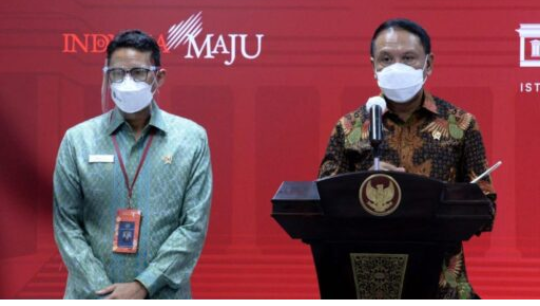 Foto Utama : Menteri Pemuda dan Olahraga, Zainudin Amali, memberikan keterangan pers bersama Menteri Pariwisata dan Ekonomi Kreatif, Sandiaga Uno, di Kantor Presiden, Jakarta, pada Rabu, 2 Juni 2021. Foto: BPMI Setpres/Kris.