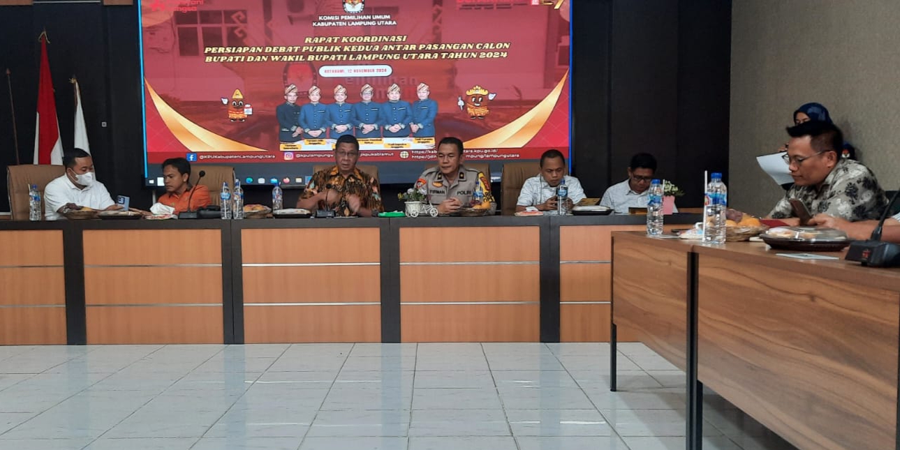 LAMPUNG UTARA (RNSI) – Polres Lampung Utara melalui Kabag Ops Kompol Firmansyah menghadiri rapat koordinasi persiapan debat publik kedua untuk Calon Bupati dan Wakil Bupati Lampung Utara tahun 2024 bertempat di Kantor KPU, Selasa (12/11/24).