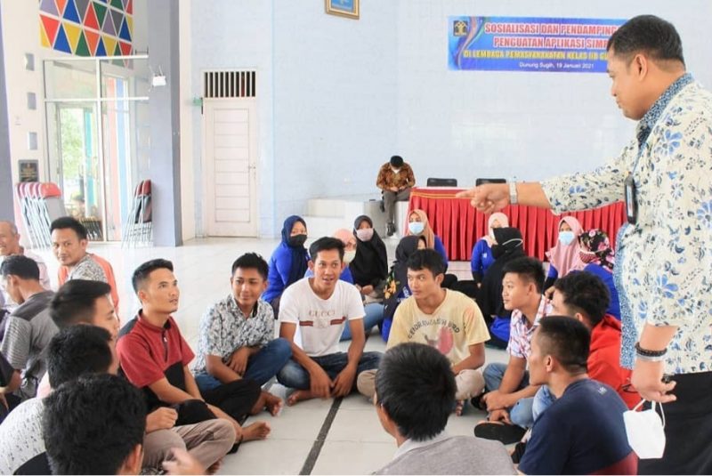 Lampung Tengah (Restorasi News Siber Indonesia/SMSI) – Kepala Divisi Pemasyarakatan Kementerian Hukum dan Hak Asasi Manusia (Kemenkumham) Kantor Wilayah (Kanwil) Provinsi Lampung, Farid Djunaidi, ddampingi Kepala Lembaga Pemasyarakatan (Kalapas) Kelas ll B Gunungsugih, Denial Arief, melakukan pertemuan dengan para Warga Binaan Pemasyarakatan (WBP) yang di aula Dr. Sahardjo, Jum’at, 22 Januari 2021.