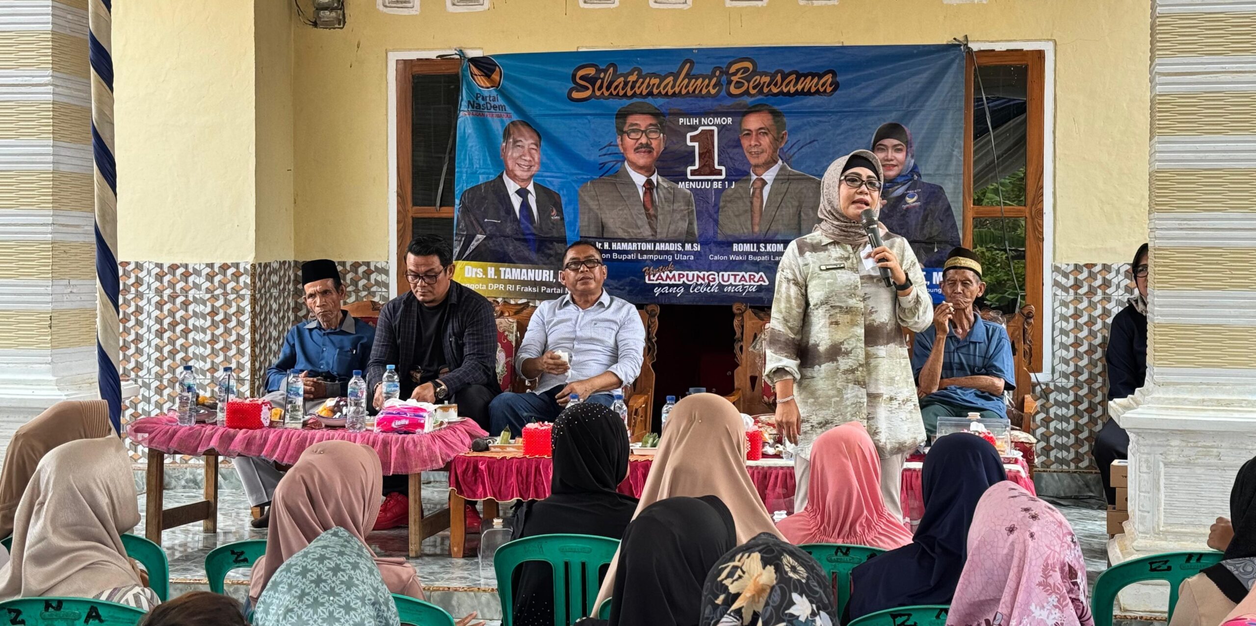 “Lampung Utara di tahun ini juga akan melaksanakan Pemilihan Kepala Daerah (Pilkada). Oleh karena itu, saya berharap kepada seluruh warga yang telah memiliki hak pilih untuk dapat menggunakan hak suaranya. Tentu dengan memilih pasangan nomor urut satu, Hamartoni-Romli,” imbau anggota DPRD Provinsi Lampung dari Fraksi Partai NasDem ini.