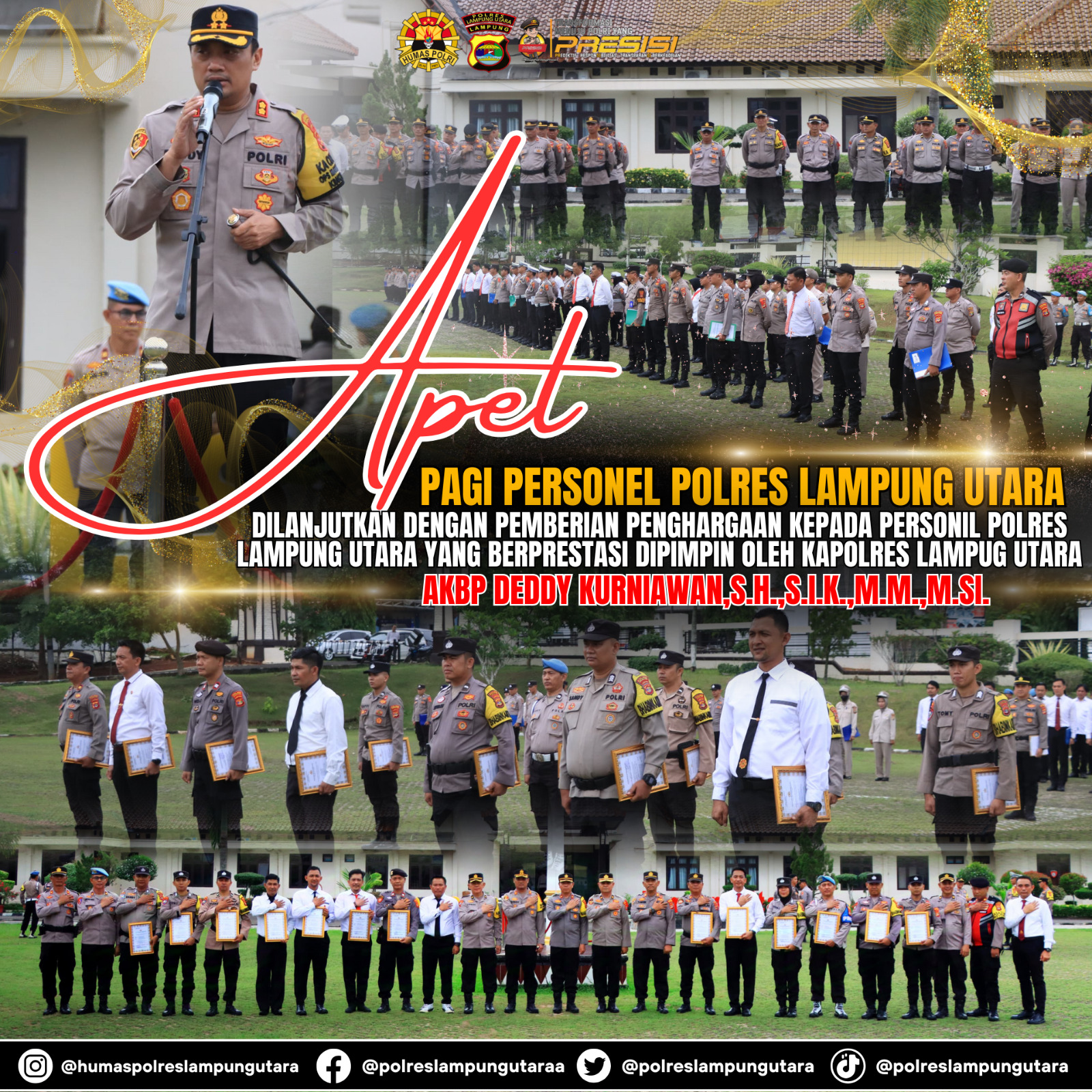 Kapolres Lampung Utara AKBP Deddy Kurniawan mengatakan, hari ini kita memberikan penghargaan kepada anggota yang berprestasi dalam mengungkapkan kasus pembunuhan dengan cepat dan personel yang berprestasi dalam cabang olahraga.