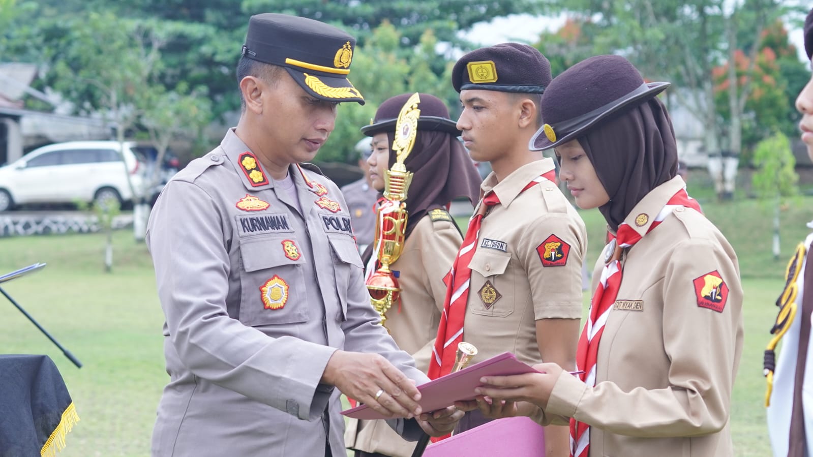 “Tentunya ini dijadikan sebagai motivasi dan kebanggaan bahwa kita mampu untuk melaksanakan tugas sebagai perwakilan dari polres lampung utara, baik itu bagi siswa-siswi Kemala Bhayangkara ataupun Patroli Keamanan Sekolah (PKS),” ujar AKBP Kurniawan yg di dampingi Kabag SDM Kompol Suharto beserta Kasat Binmas AKP Edy Juarsyah.