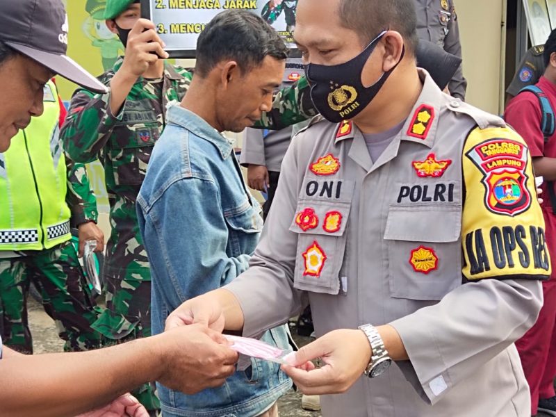 Kesempatan itu, sebagai bentuk kepedulian terhadap kesehatan dalam mencegah dan memutus mata rantai Covid-19, Kapolres Tanggamus juga membagikan masker kepada pelanggar setelah ditindak oleh Satpol PP.
