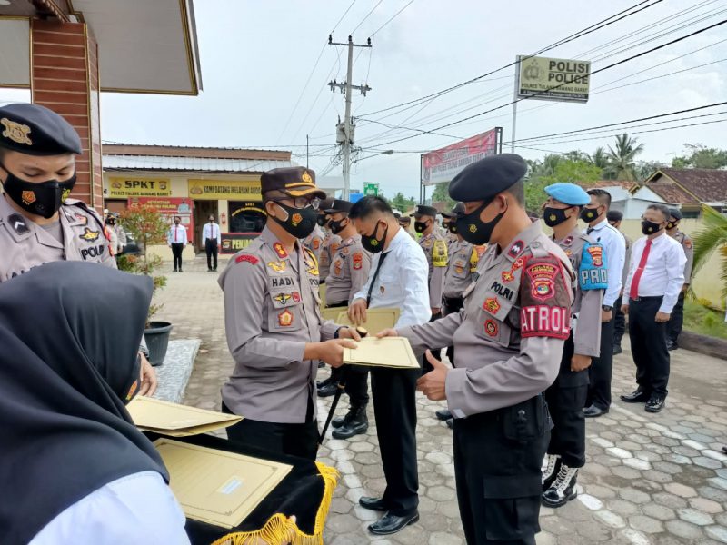 Tulangbawang Barat (Restorasi News Siber Indonesia/SMSI) – Kapolres Tulangbawang Barat (Tubaba) AKBP. Hadi Saepul Rahman, berikan penghargaan pada sejumlah personel atas dedikasi dalam pemulasaran jenasah suspect Covid-19 di Tiyuh Margakencana, Kecamatan Tulangbawang Udik; dan Tiyuh Pagarjaya, Kecamatan Lambukibang, Kabupaten Tubaba.