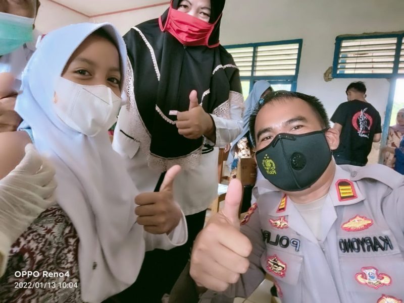 Cara ini ia lakoni saat bersama anggotanya hadir lansung pada kegiatan Vaksinasi merdeka anak usia 6 sampai 11 tahun di SD.N 02 Desa Ogan Lima Kecamatan Abung Barat hari Jumat 14/1/ 2022
