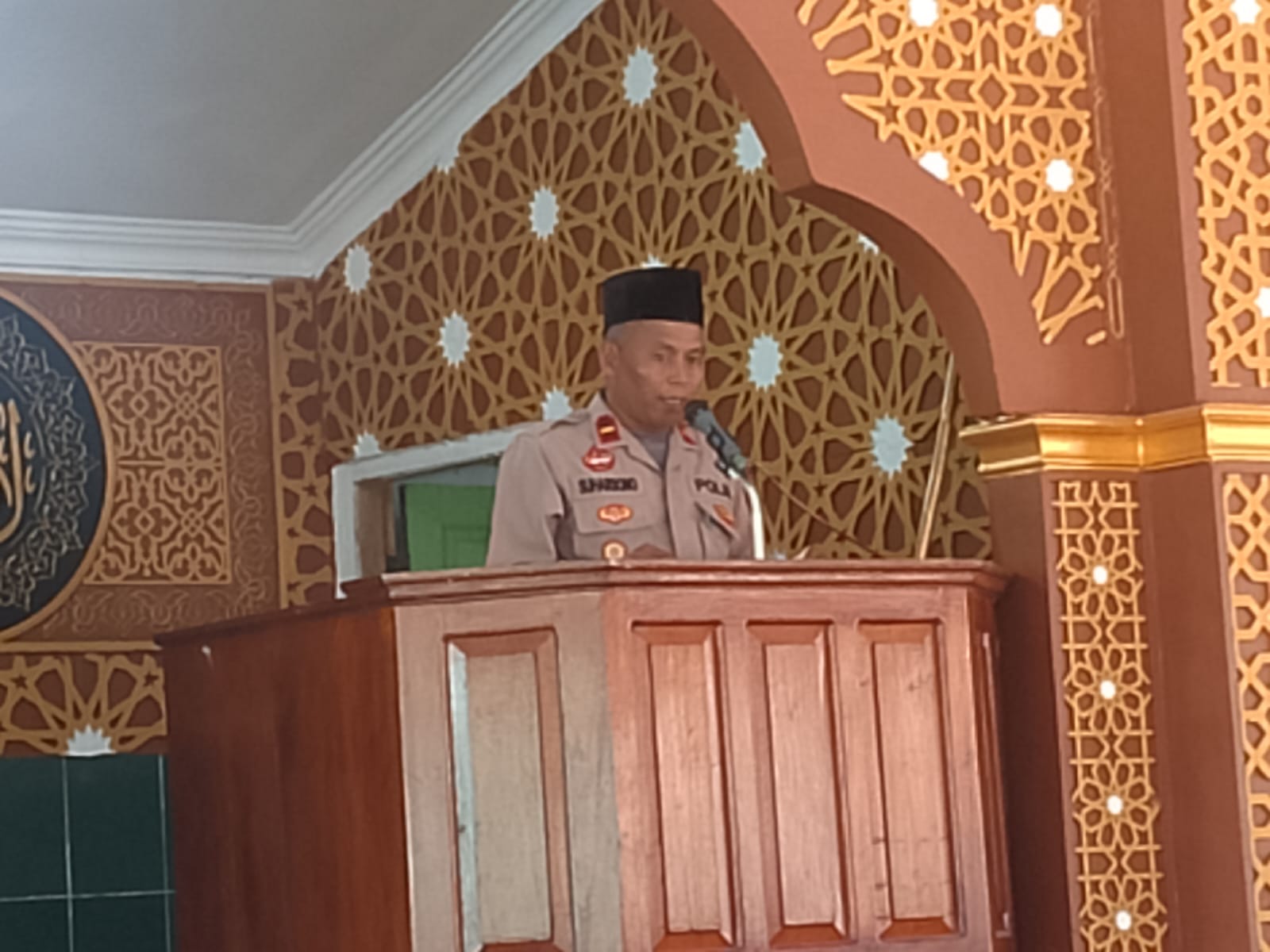 Pasalnya, Kapolsek Sungkai Jaya Polres Lampung Utara Ipda Suharsono menjadi Khatib pada shalat Jumat di masjid tersebut.