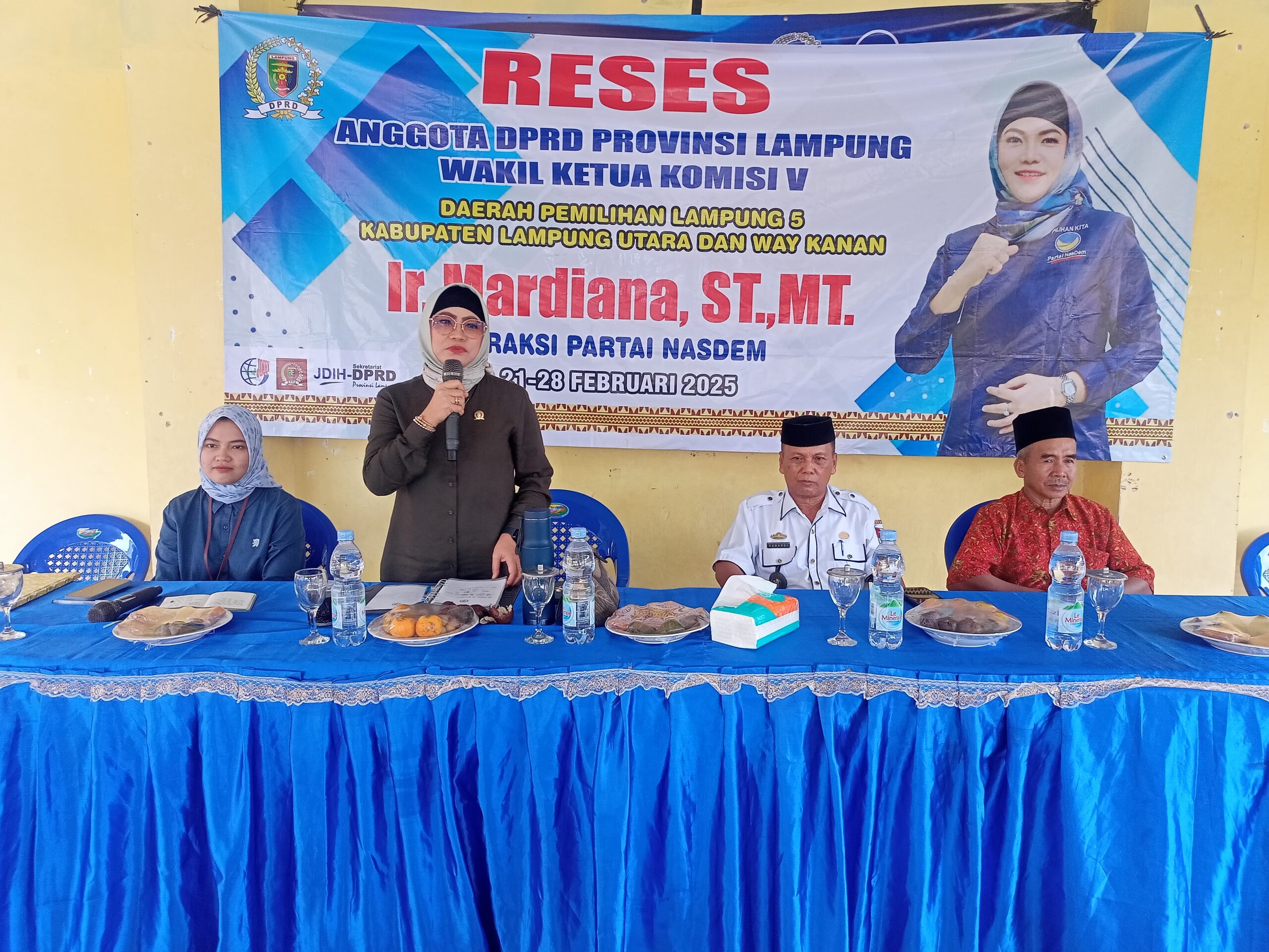 “Dalam kunjungan kerja reses yang dilaksanakan anggota legislatif, selain bertujuan untuk menyerap aspirasi masyarakat secara langsung, juga merupakan suatu pertanggungjawaban moral dan politis kepada konstituen yang menitipkan amanah kepada mereka,” terang Mardiana, anggota DPRD Provinsi Lampung periode 2024-2029.