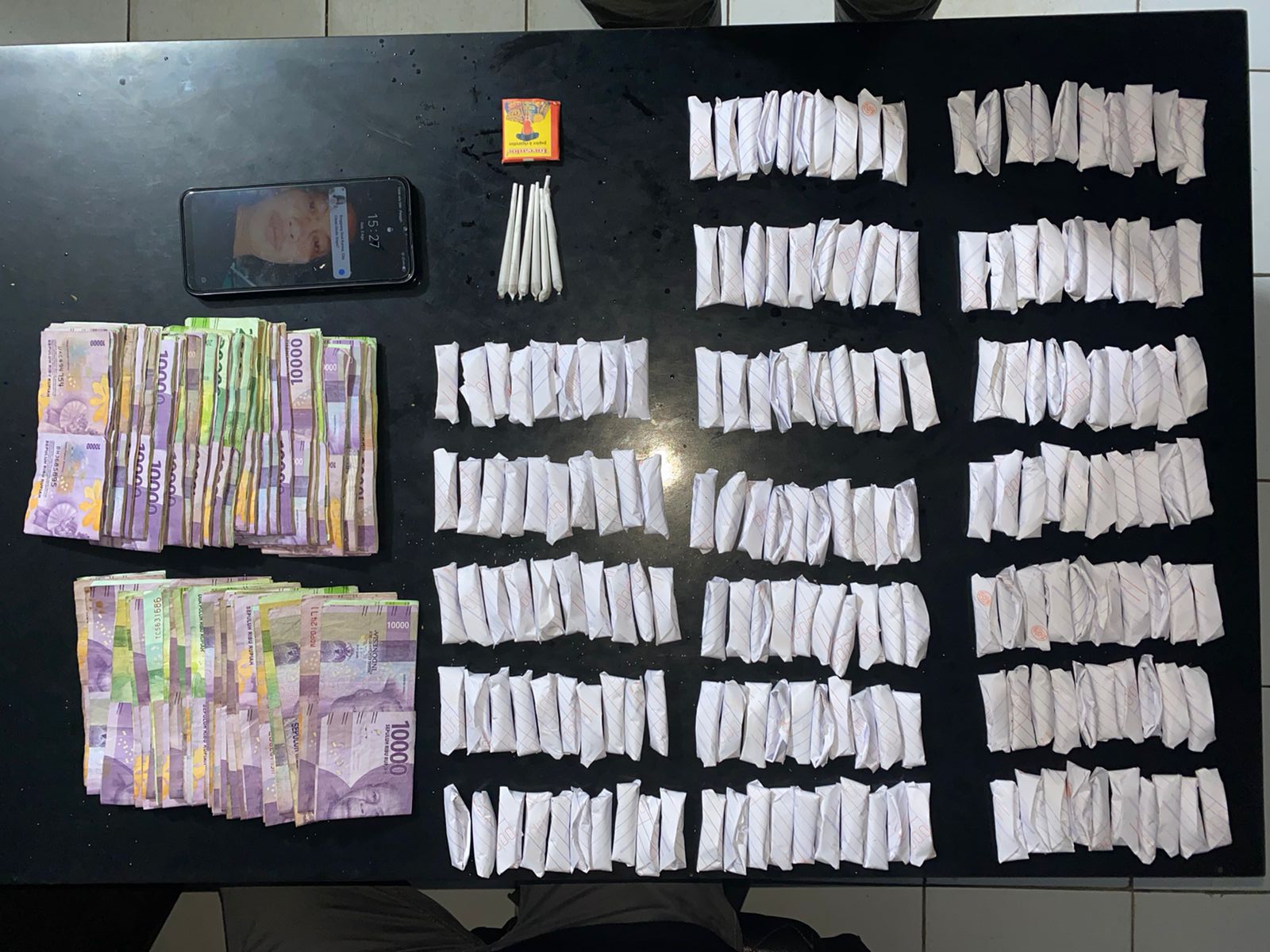 “Alhasil, saat dilakukan penggrebekan di kediamannya, personel kita menemukan barang bukti ratusan paket daun ganja kering siap edar dan uang yang diduga hasil penjualan barang terlarang tersebut,” ujar AKP Made Indra, Kamis kemarin, 4 Agustus 2022, melalui siaran persnya.