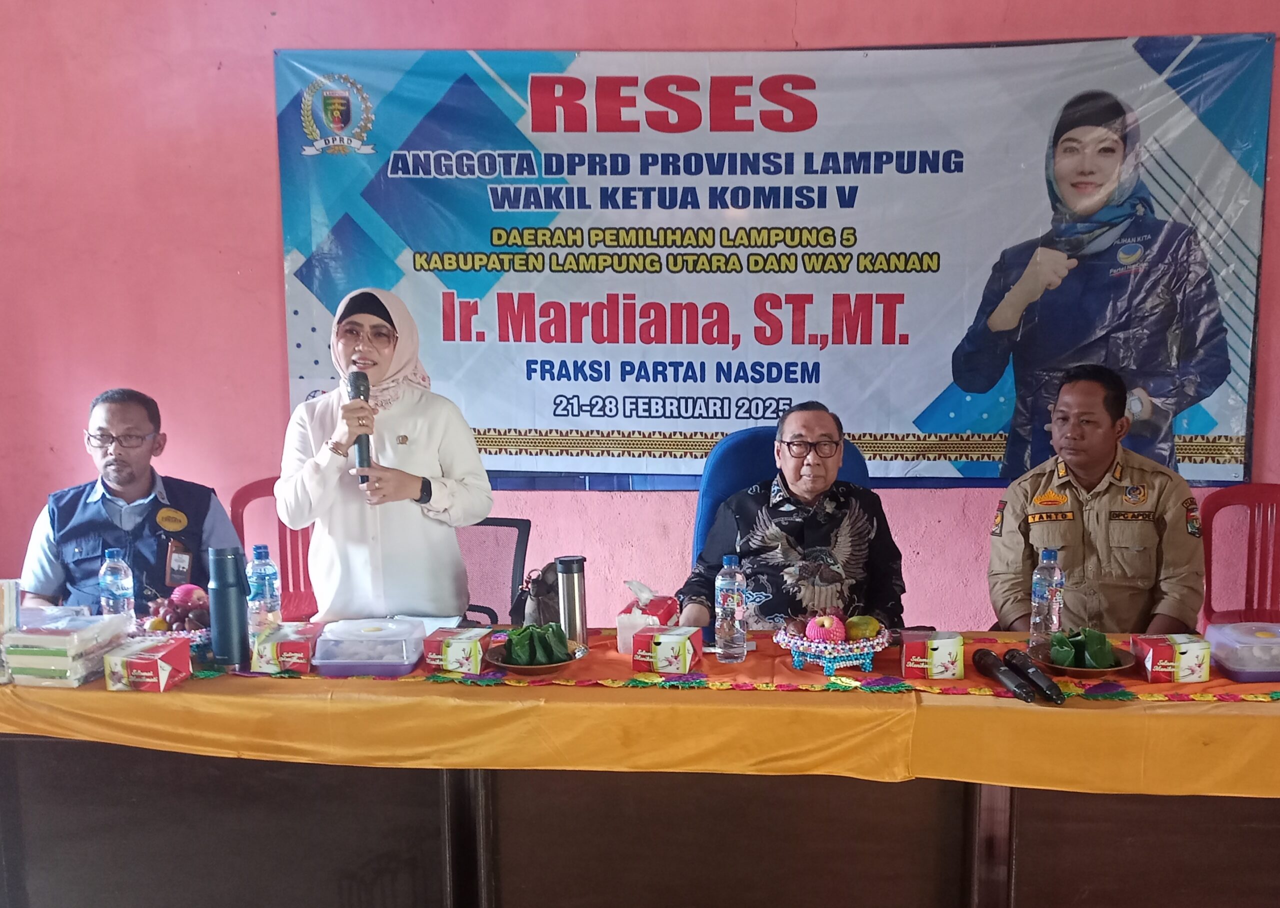 LAMPUNG UTARA (RNSI) – Wakil Ketua Komisi V DPRD Provinsi Lampung, Ir. Mardiana, S.T., M.T., melanjutkan agenda kerja resesnya, pada Selasa, 25 Februari 2025.
