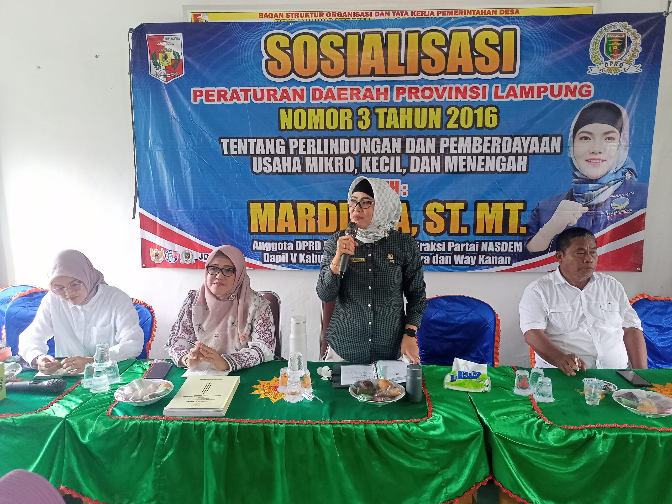 Hal ini disampaikan dalam Sosialisasi Peraturan Daerah Provinsi Lampung nomor 3 tahun 2016, tentang Perlindungan dan Pemberdayaan Usaha Mikro Kecil dan Menengah yang dilaksanakan Wakil Ketua Komisi V DPRD Provinsi Lampung, Ir. Mardiana, S.T., M.T., pada Kamis, 21 November 2024, bertempat di Balai Desa Gunungkeramat, Kecamatan Abung Semuli, Lampung Utara.
