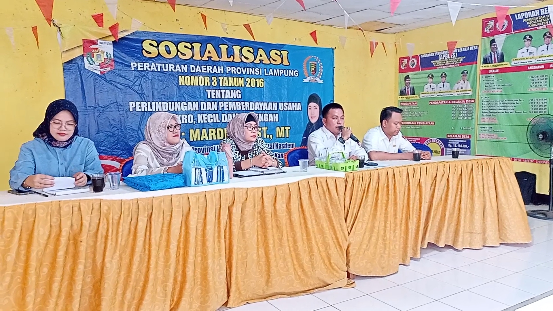 LAMPUNG UTARA (RNSI) – Anggota Komisi IV DPRD Provinsi Lampung, Mardiana, S.T., M.T., melangsungkan Sosialisasi Peraturan Daerah Provinsi Lampung nomor 3 tahun 2016 tentang Perlindungan dan Pemberdayaan Usaha Mikro Kecil dan Menengah (UMKM).