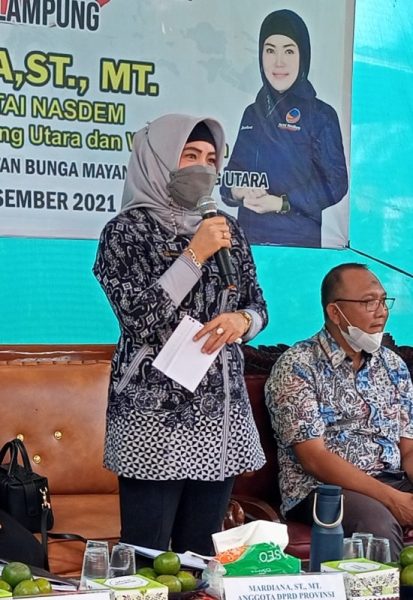 LAMPUNG UTARA (RNSI/SMSI) – Anggota Fraksi Partai NasDem Komisi IV DPRD Provinsi Lampung, Mardiana, ST, MT, sambangi konstituennya warga Desa Tulangbawangbaru, Kecamatan Bungamayang, Lampung Utara, Sabtu, 11 Desember 2021.