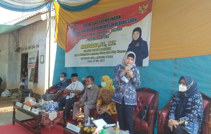 Hal ini disampaikan dalam Sosialisasi Pembinaan Ideologi dan Wawasan Kebangsaan, yang dilaksanakan anggota DPRD Provinsi Lampung Fraksi Partai NasDem, Mardiana, ST, MT, Sabtu, 29 Mei 2021, di Kelurahan Kotabumi Udik, Kecamatan Kotabumi, Lampung Utara.