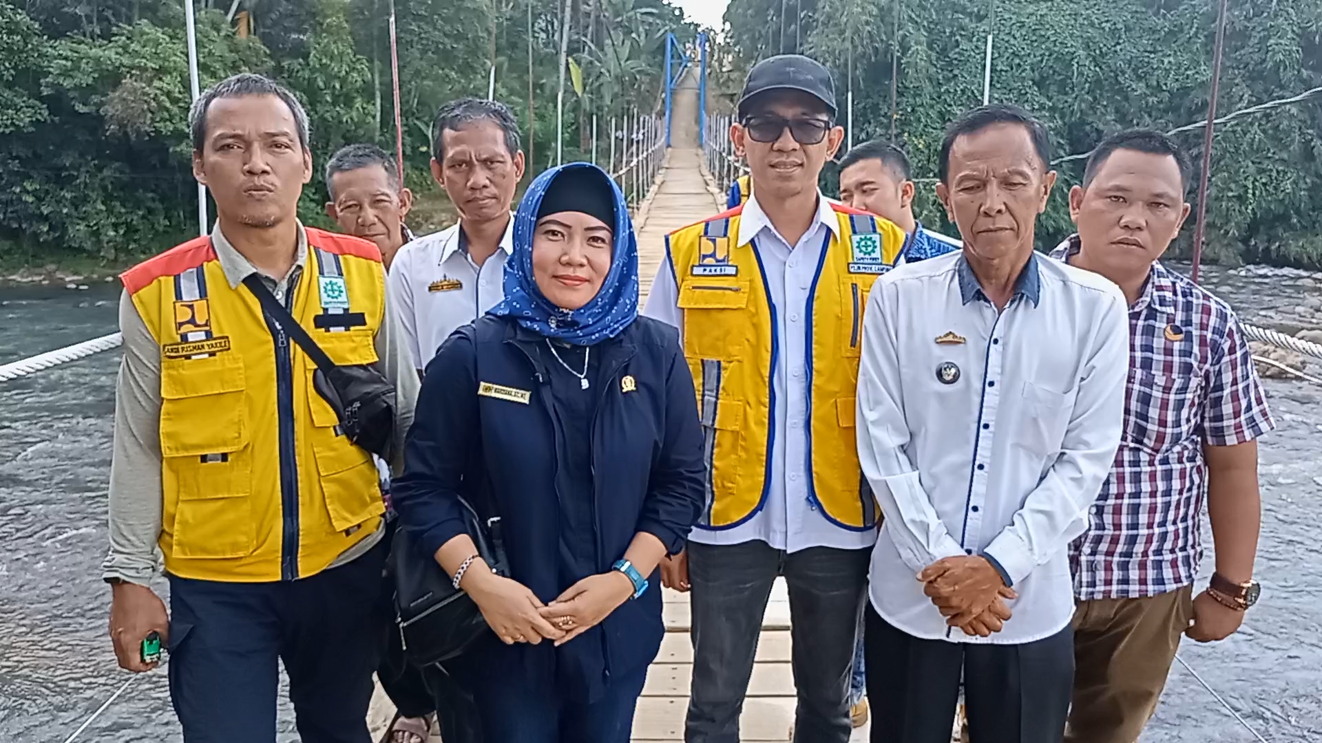 Dalam hal ini, anggota Fraksi Partai NasDem Komisi IV DPRD Provinsi Lampung, Mardiana, S.T., M.T., mewakili anggota Komisi V DPR-RI, Drs. Hi. Tamanuri, M.M., bersama jajaran Balai Pelaksanaan Jalan Nasional (PJN) Binamarga Kementerian PUPR Provinsi Lampung meninjau lokasi akan dibangunnya jembatan gantung aspirasi yang berada di Desa Sinarmulya, Kecamatan Tanjungraja, Kabupaten Lampung Utara, Kamis, 11 Agustus 2022.