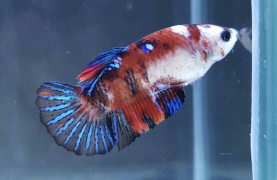 Ciri ciri ikan cupang betina siap kawin, selain perut penuh dengan telur, titik putih di bawah perutnya semakin menonjol.
