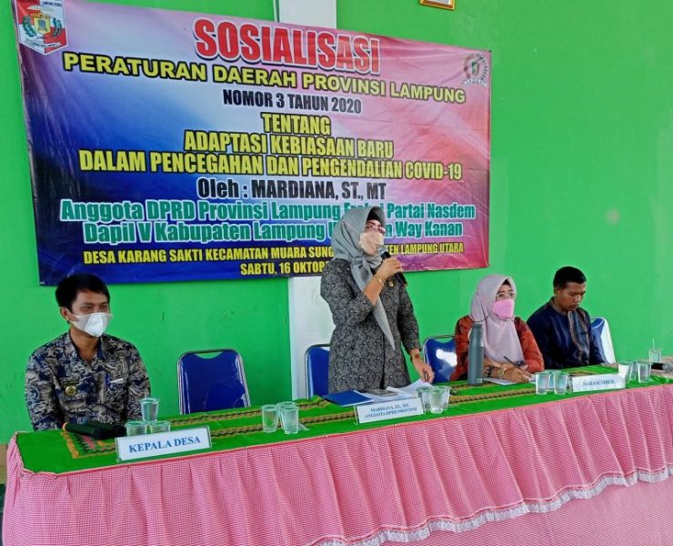 Dalam kunjungan itu, Mardiana, ST., MT., juga melangsungkan agenda Sosialisasi Peraturan Daerah (Perda) Provinsi Lampung nomor 3 tahun 2020, tentang Adaptasi Kebiasaan Baru dalam Pencegahan dan Pengendalian Covid-19 dengan dibantu disampaikan oleh narasumber Micke Irmawati, SE.