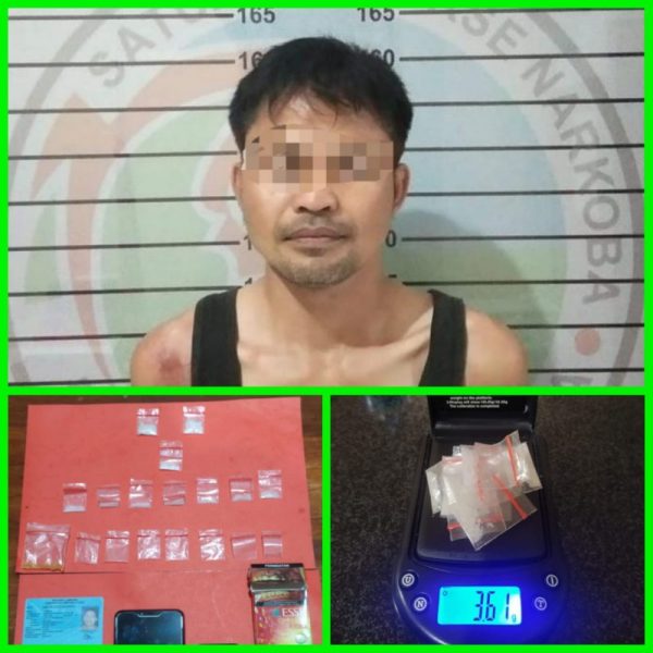 “Selain terduga pelaku, juga turut diamankan barang bukti (BB) berupa sepuluh paket yang diduga kuat narkotika jenis sabu berat bruto 3,61 gram, satu bungkus plastik klip bening berisi daun kering siap edar yang disinyalir ganja berat bruto 0,38 gram, satu linting yang juga diduga kuat ganja siap pakai berat bruto 0,10 gr, berikut BB pemyerta lainnya,” terang Iptu Aris Satrio.