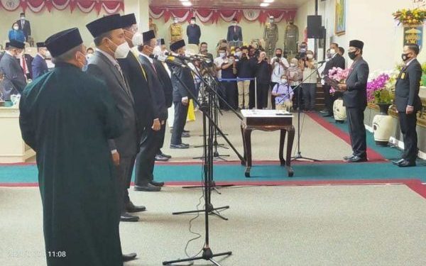 Bandar Lampung (RNSI-SMSI)-Enam anggota DPRD Lampung Pengganti Antar Waktu (PAW) sisa masa jabatan 2019-2024 resmi diambil sumpah dan janji sebagai anggota legislatif di ruang rapat Paripurna dipimpin Ketua DPRD Mingrum Gumay, Senin 4 Januari 2021. PAW yang dilantik berasal dari Fraksi Golkar dan PKS, sementara untuk Fraksi PDIP menunggu SK mendagri.