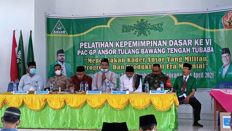 TULANGBAWANG BARAT (RNSI/SMSI) – Ketua PCNU Tulangbawang Barat (Tubaba) KH.Nurhadi, S.PdI membuka Pelatihan Kepemimpinan Dasar (PKD) ke VI PAC GP Ansor Kecamatan Tulangbawang Tengah. Kegiatan berlangsung di Tiyuh/Desa Candra Kencana kecamatan Tulang Bawang Tengah kabupaten Tubaba, Jum’at, 2 April 2021.